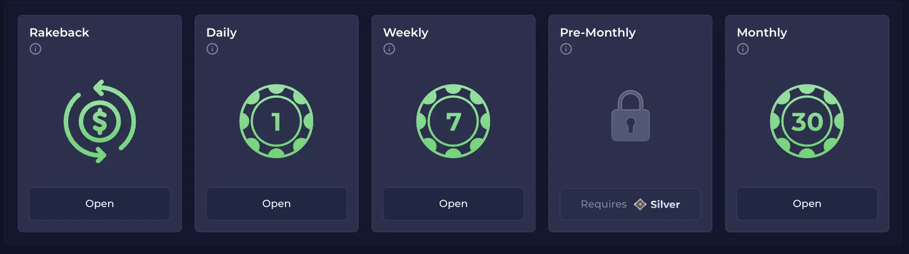 - Pre-monthly Reload – On the 16th of each month, you can claim this deal alongside our monthly reload bonus. It’s based on your activities over the last 30 days, and your reward includes a rakeboost.