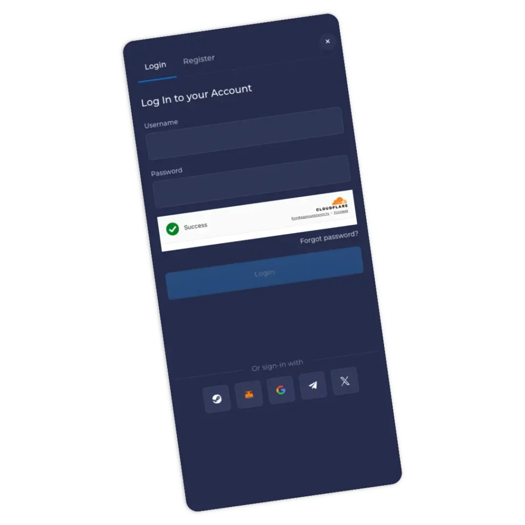 - Choose to either sign up via social media accounts like Steam, Metamask, Telegram, Google, and X, or by completing our register.